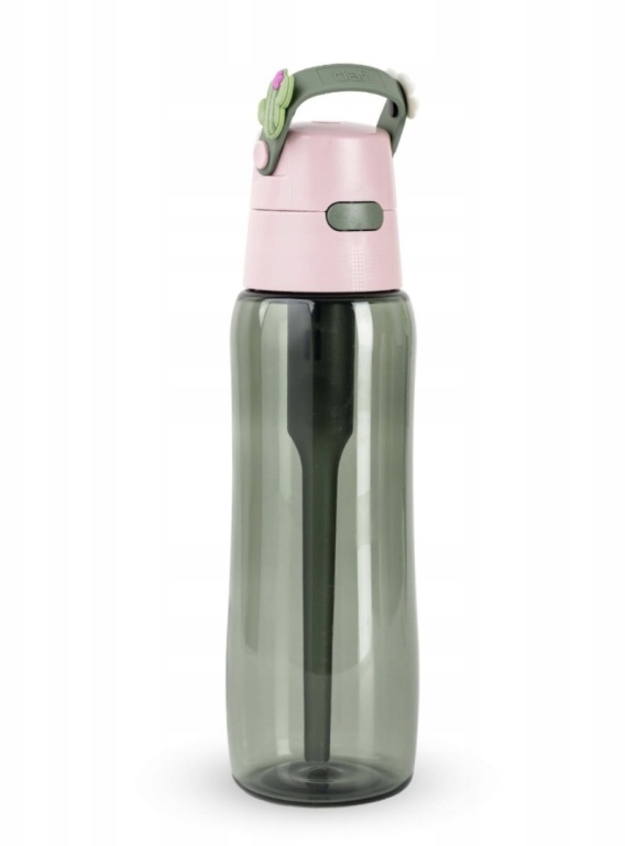Poręczna butelka filtrująca wielokrotnego użytku wykonana z wytrzymałego Tritan™ wyposażona w wymienny co miesiąc filtr węglowy (naturalne medium filtrujące wytwarzane z łupin orzecha kokosowego). Usuwa on z wody kranowej nieprzyjemny smak i zapach chloru. Pozostawia niezmienioną ilość minerałów naturalnie w niej występujących (głównie wapnia i magnezu), dzięki czemu woda zachowuje cenne dla zdrowia pierwiastki. Lekko podwyższa pH wody, co przekłada się na jej jakość. Jest całkowicie pozbawiona szkodliwego Bisfenolu A i dopuszczona do kontaktu z wodą na podstawie odpowiednich atestów.