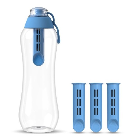 • Poręczna butelka wielokrotnego użytku wyposażona jest w wymienny co miesiąc filtr węglowy (naturalne medium filtrujące wytwarzane z łupin orzecha kokosowego). Usuwa on z wody kranowej nieprzyjemny smak i zapach chloru. Pozostawia niezmienioną ilość minerałów naturalnie w niej występujących (głównie wapnia i magnezu), dzięki czemu woda zachowuje cenne dla zdrowia pierwiastki. Lekko podwyższa pH wody, co przekłada się na jej jakość. Wykonana jest z wytrzymałego tworzywa. Jest całkowicie pozbawiona szkodliwego Bisfenolu A i dopuszczona do kontaktu z wodą na podstawie odpowiednich atestów.