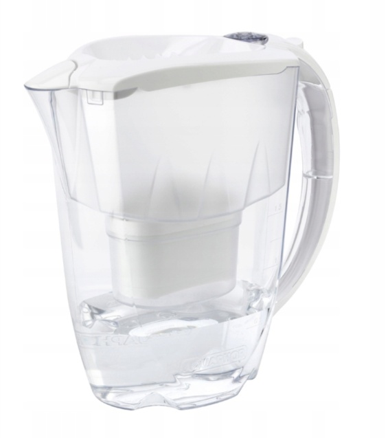 Dzbanek Aquaphor Amethyst mechaniczny wskaźnik zużycia wkłady, który zlicza każdorazowe otwarcie pokrywki do nalania wody.