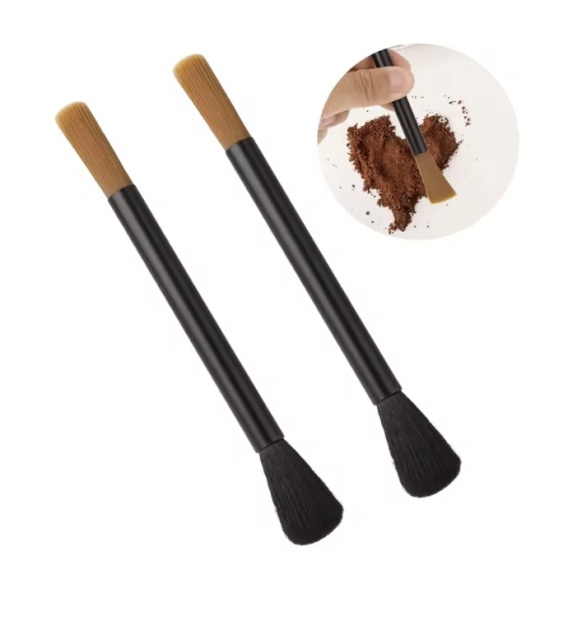 Szczotka do czyszczenia ekspresu, młynka do kawy. Profesjonalna, dwugłowicowa z 1 końcówka delikatną do wymiatania resztek kawy i drugą, twardszą, do usuwania zaschniętych warstw kawy.