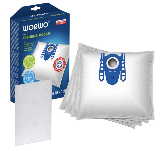 4 SZT. WORKI WORWO SBMB01K DO ODKURZACZA + 1 FILTR WLOTOWY